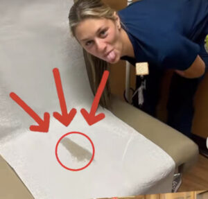Santa Barbara, CA — A widely shared TikTok video, posted over the Labor Day weekend, has sparked outrage after content emerged showing former and current staff from a Santa Barbara urgent care facility posing around bodily fluids left by patients during gynecological exams. The posts, now deleted, included captions such as “Guess the substance” and “Make sure to leave your healthcare workers sweet gifts like these,” and featured mocking gestures and expressions, including a nurse giving a thumbs-up and another making a face near stains on exam table paper.People.comed hat